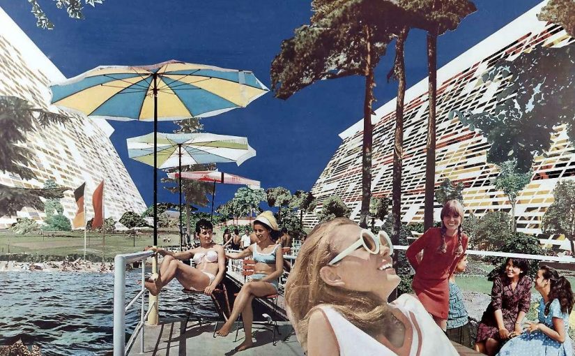 Bild: Dieter Urbach: Visualisierung von Josef Kaisers Großhügelhaus, Fotocollage, 1971 (Bild: © Dieter Urbach, Berlinische Galerie, 2015 Teil der dortigen Ausstellung „Radikal modern“)