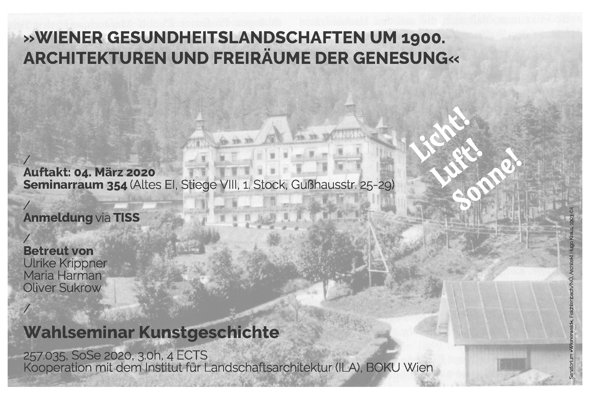 TU Wien, Research Unit Art History, Summer Semester 2020: »Landscapes of Health in Vienna around 1900. Architectures and Spaces of Convalescence«